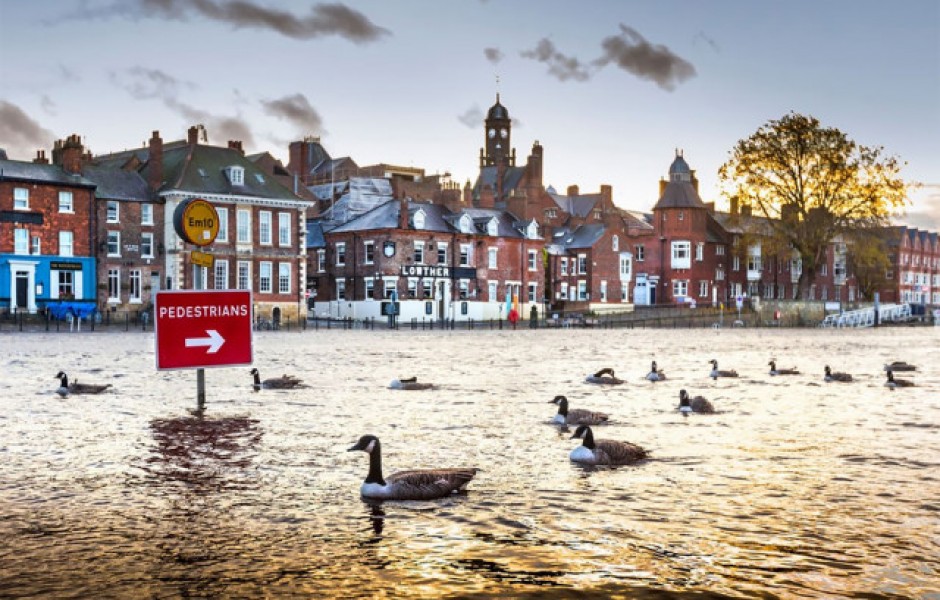 6. "Йоркское наводнение". Стая канадских гусей плывёт по затопленной дороге после того, как река Уз вышла из берегов. (фото: © Andrew McCaren)